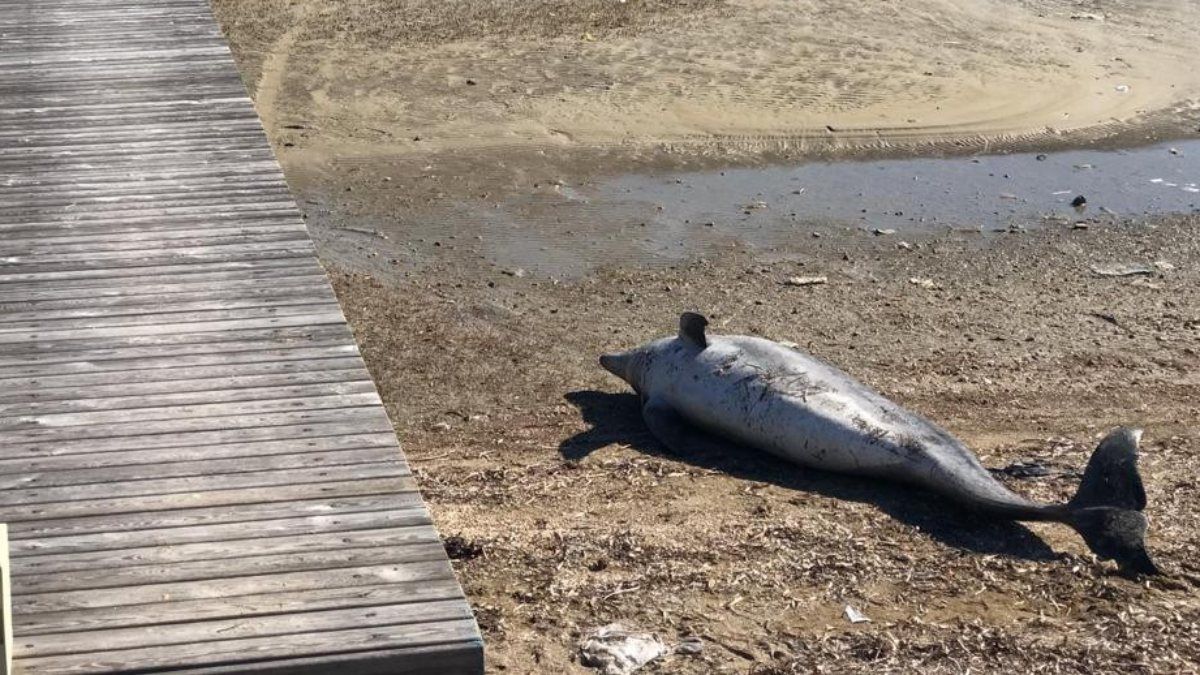Balıkesir'in Ayvalık ilçesine bağlı Cunda Adası'nda sabah yürüyüşe çıkan vatandaşlar, sahilde ölmüş bir yunus balığı olduğunu fark etti.