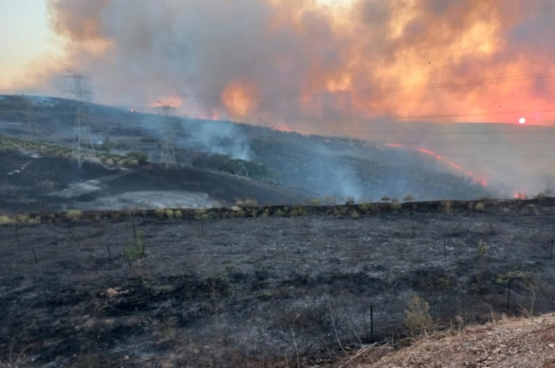 Anız yakılmasının ardından alevler, rüzgarın da etkisiyle geniş alana yayıldı.