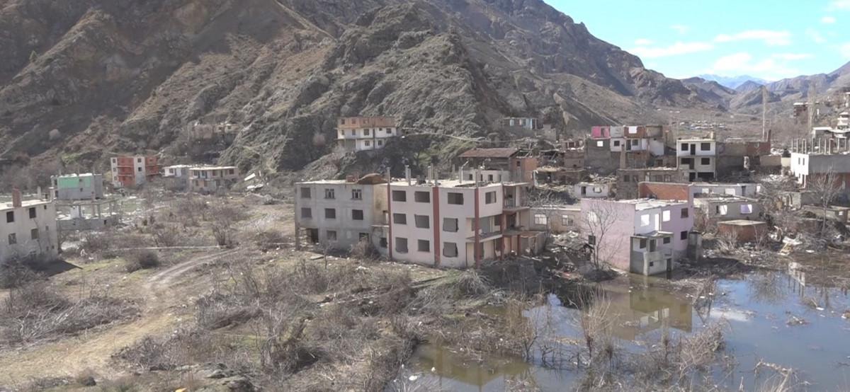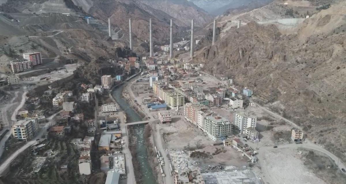 Ev, yol, köprü ve arazilerin suya gömüleceği ilçede baraj suları, dağlardaki karın erimesi sonrası Yusufeli sınırlarına dayandı. Yeni yerleşim alanlarına göçün büyük oranda tamamlandığı ilçe, boşaltılan binalarda iş makineleri destekli geri dönüşüm yıkımlarının ardından 'hayalet kent'e döndü. Ev ve iş yerinin terk edilmesiyle anıların da baraj suları altında kalacağı ilçede ortaya çıkan sakin tablo, dronla görüntülendi.