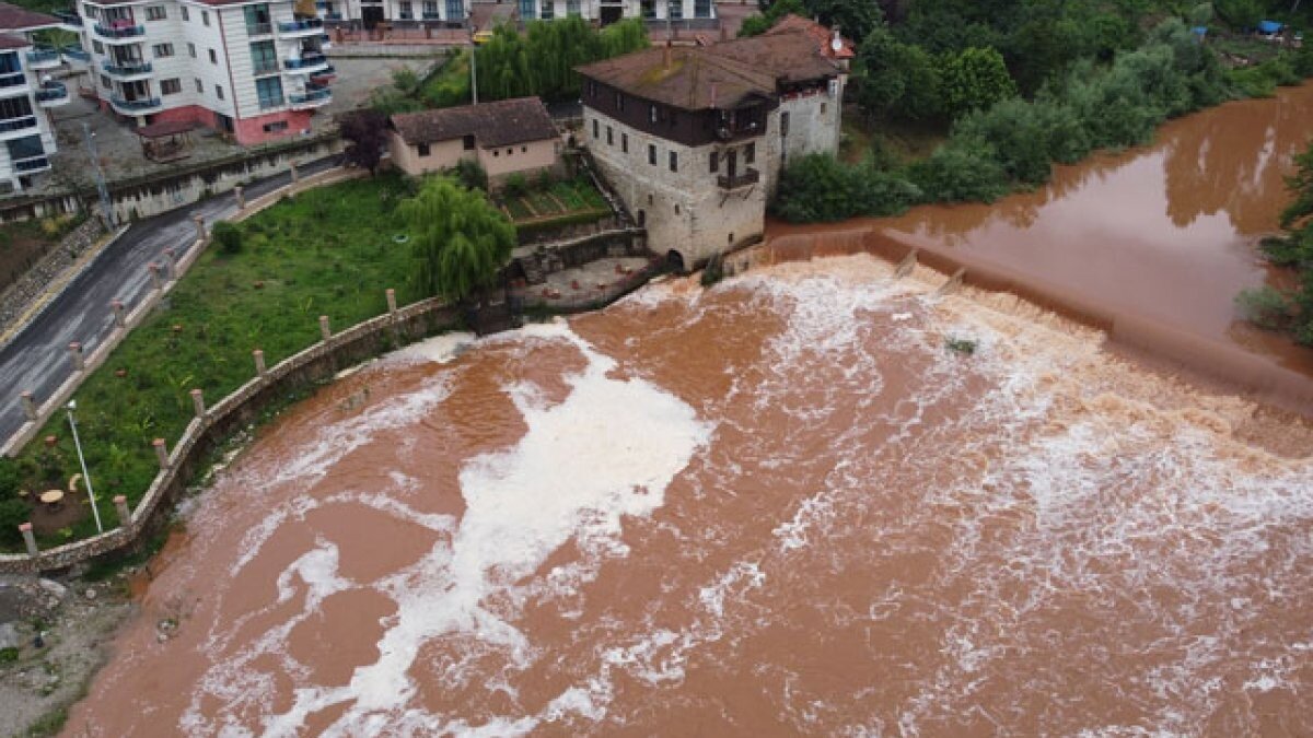 Bartın'da iki gündür devam eden sağanak yağışların etkisiyle Bartın Irmağı'nın, Ulus ve Arıt ilçelerinden gelen ve Orduyeri Mahallesi’ndeki Çağlayan mevkisinde birleşen kısmında köpük oluştu.