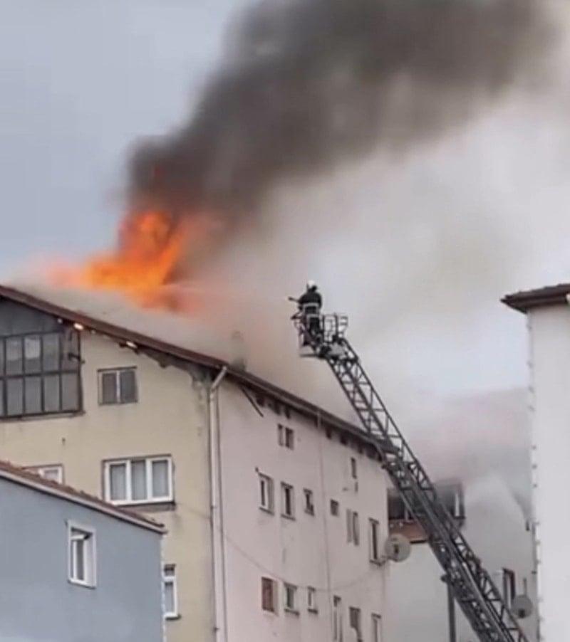 Kozcağız beldesindeki 4 katlı binanın çatısındaki yangın, çevredekileri endişelendirdi. İhbar üzerine gelen itfaiye ekipleri zamanında müdahale ederek yangını söndürmeyi başardı.