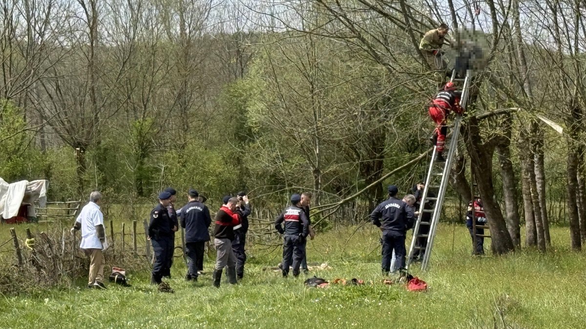 Sağlık ekipleri, yaklaşık 5 metre yükseklikte dalların arasında kalan Hasan Erdoğan'ın kalp krizi geçirip yaşamını yitirdiğini tespit etti.