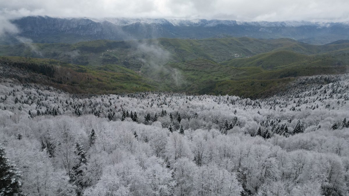 Ayrıca 1200 rakımdaki Isırganlı ve Elmacık köylerine yağan kar nedeniyle çiçek açan ağaçlar da beyaz örtüyle kaplandı.