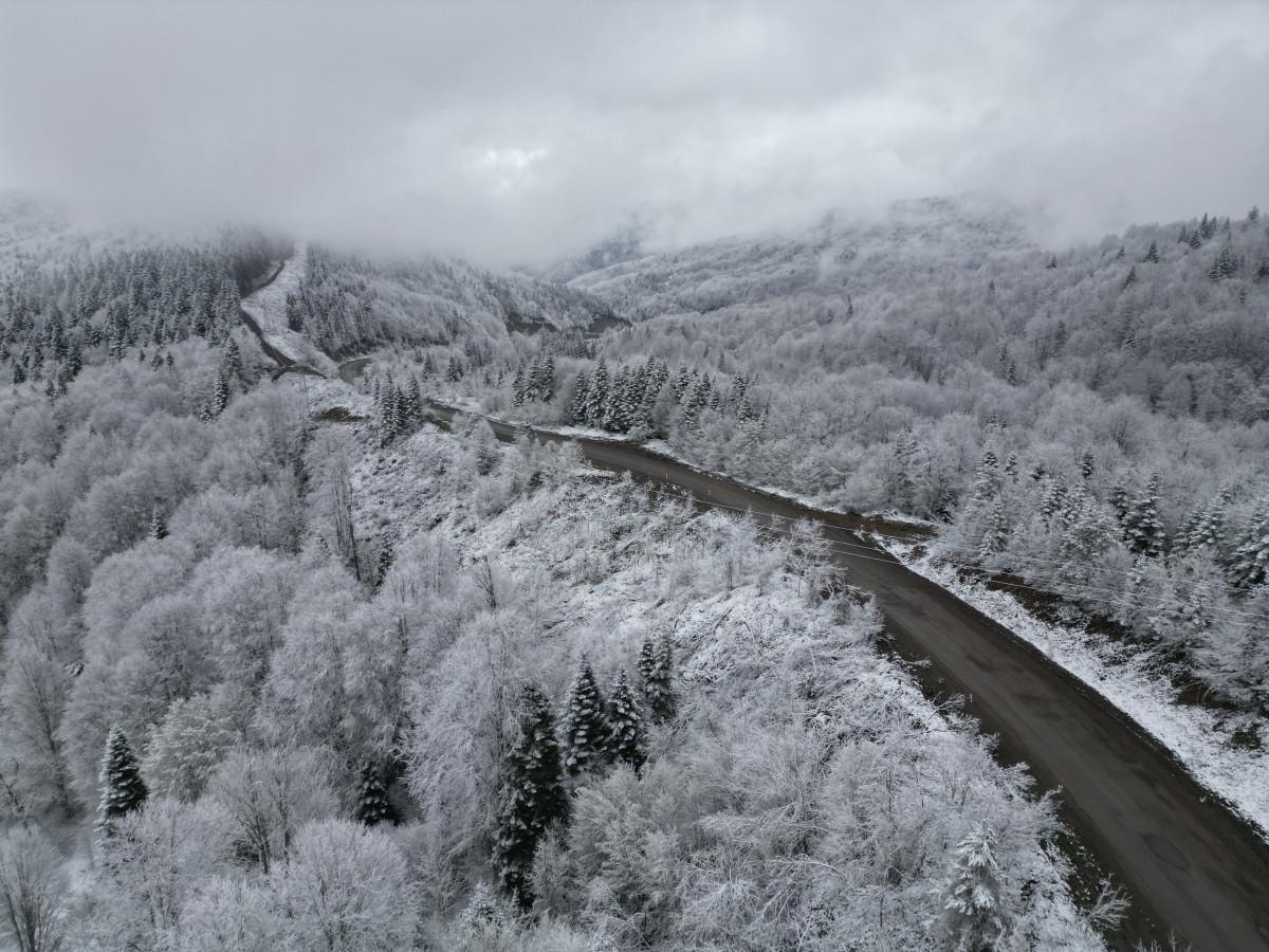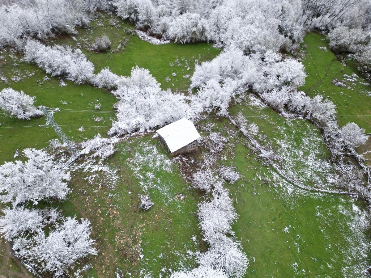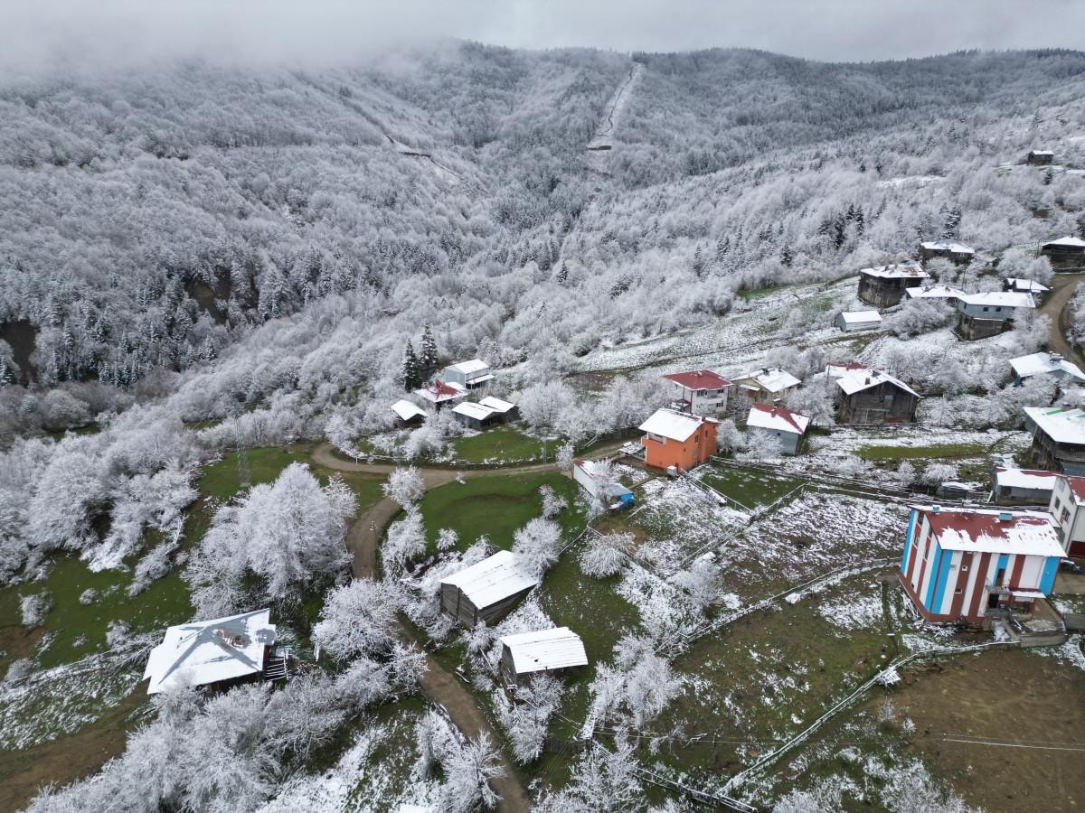 Köydeki eski tarihi evlerin karlı görüntüsü görenleri hayran bıraktı. Hasanören, Göksu, Şirinler ve Isırganlı köyleri ile karla kaplanan bölge dronla görüntülendi.