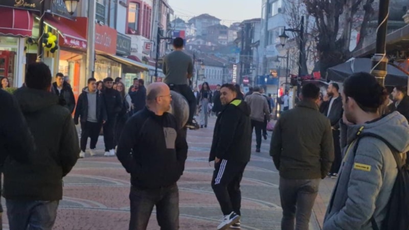 Bartın'ın kalabalık caddeye atla gelen bir kişinin gezisi polisin uyarısı ile son buldu.