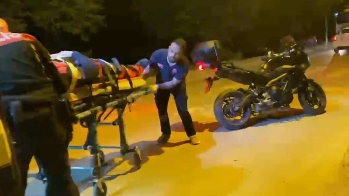 Sürücünün manevrasının ardından motosiklet devrilirken polis memurları Ü.Ö. ve F.Ç. yaralandı.