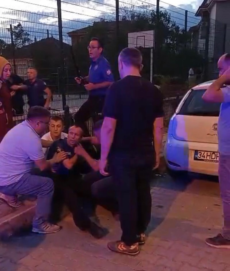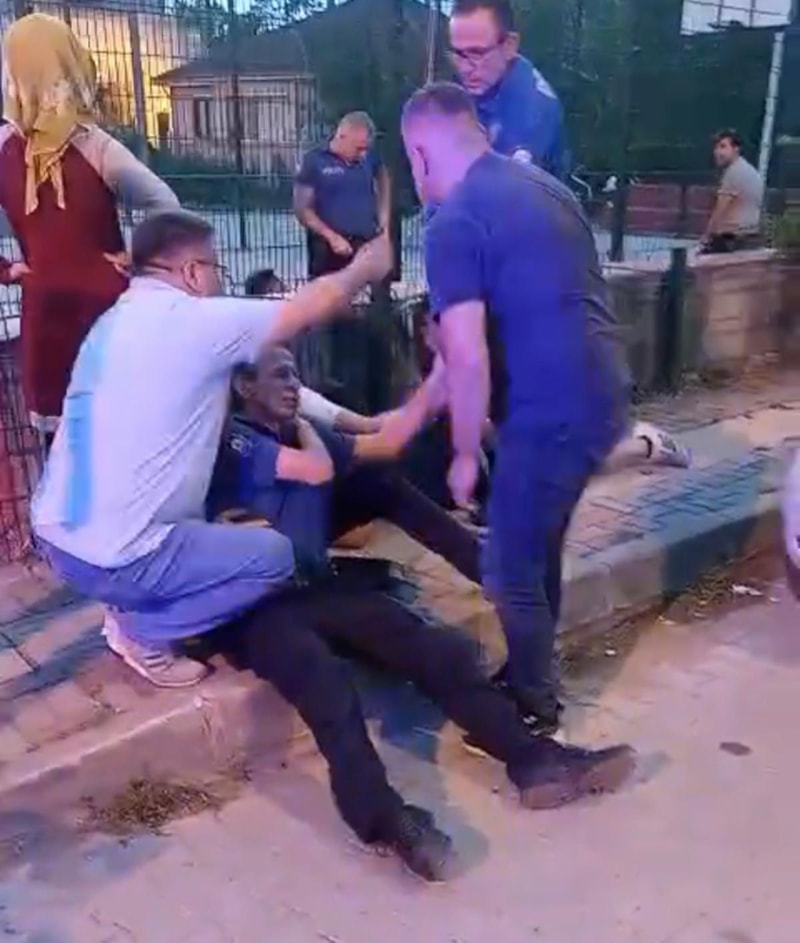 Kavga eden kişilerin sopa ile saldırması sonucu polis memuru İsmail Y., omzundan yaralandı.