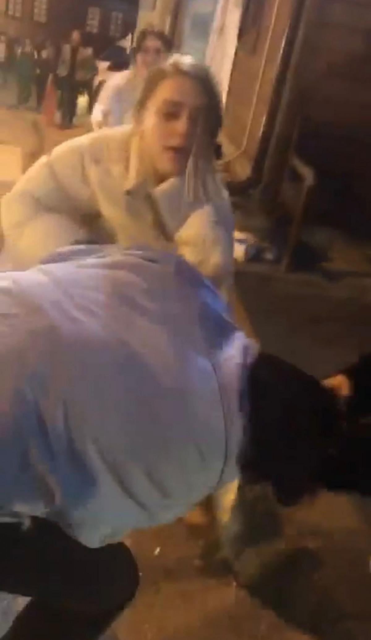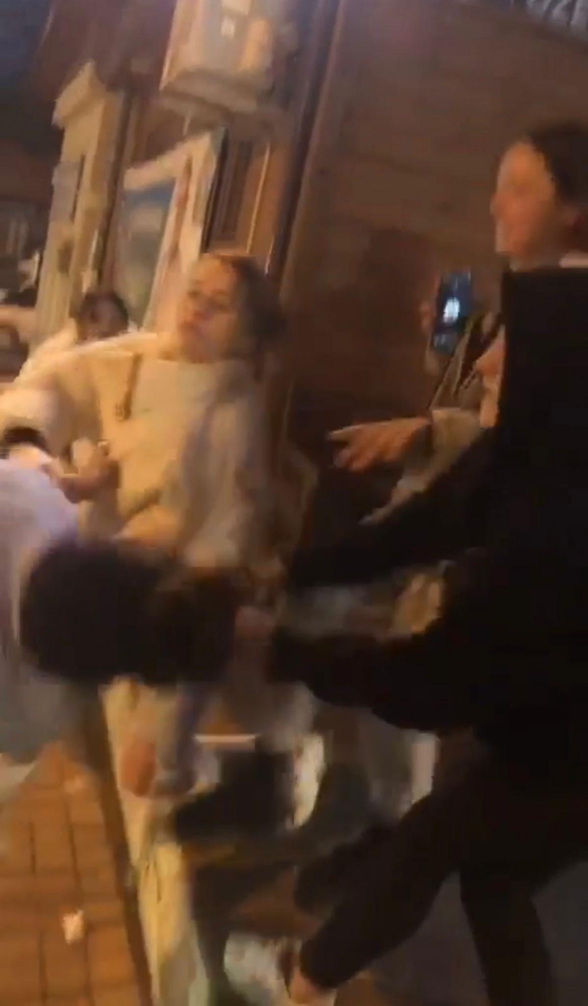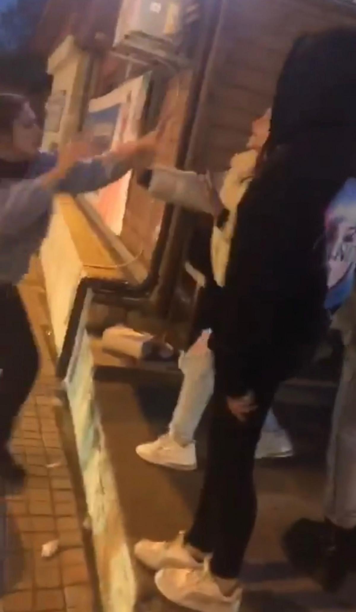 O anlar, kavga eden kızların arkadaşları tarafından cep telefonuyla görüntülendi.