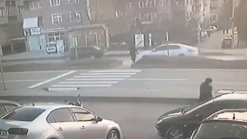 Görüntülerde, otomobilin çarpma anı ve kadının çarpmanın şiddetiyle metrelerce savrulduğu görüldü.