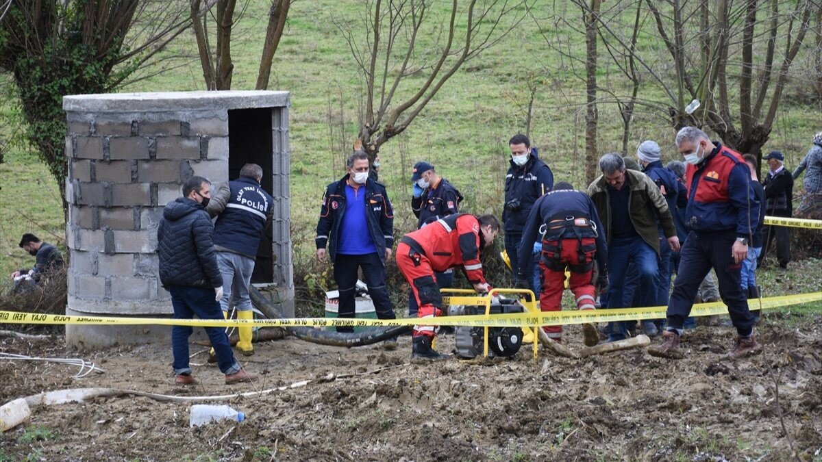 Bölgeye gelen ekipler, cesede ulaşılması için 6 metre derinliğinde olan kuyudaki suyu pompa yardımıyla boşalttı.
