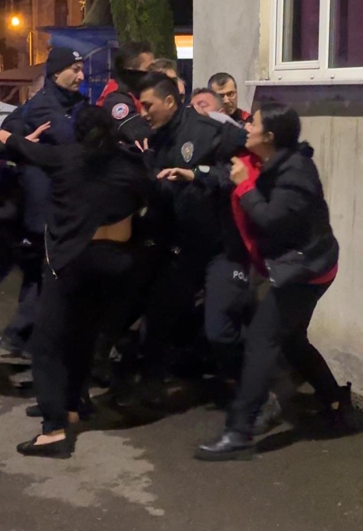 Biber gazı kullanan polis ekipleri ile kavgaya karışan bir grup arasında da gerginlik yaşandı.