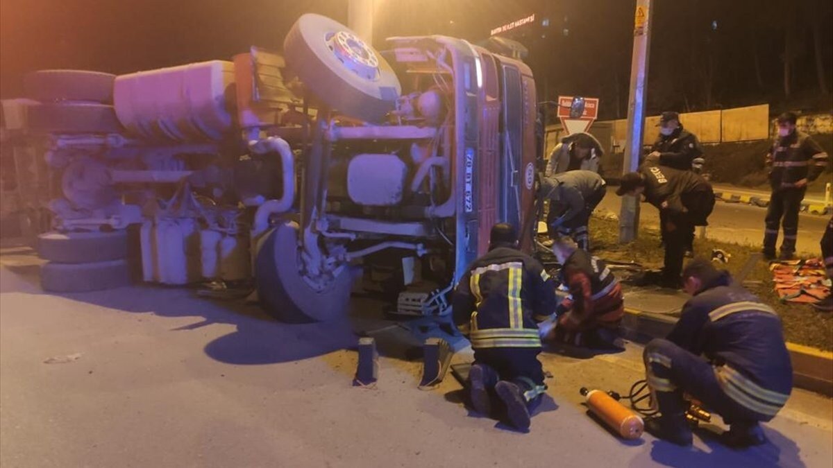 Sürücü Zafer G. isimli vatandaş, Tuna Mahallesi Safranbolu kavşağında virajı alamayınca, tır devrildi.
