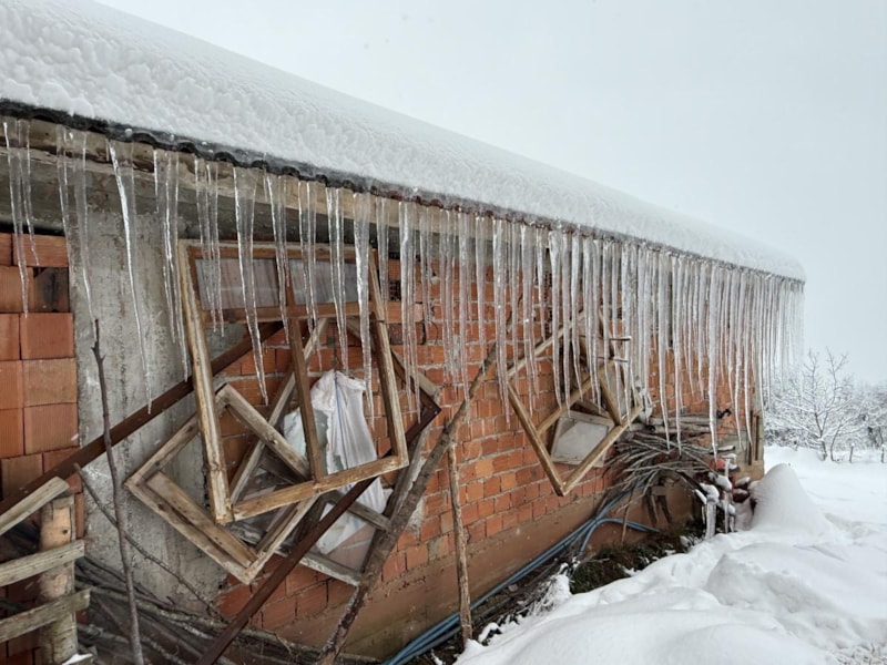 Hava sıcaklığının eksi 10 olarak ölçüldüğü köyde evlerin çatılarında 1 metre uzunluğunda buz sarkıtları oluştu.