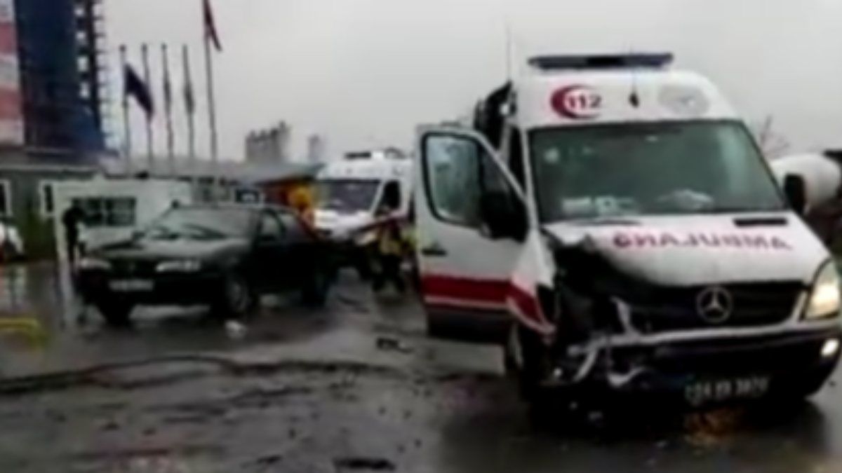 İstanbul'un Başakşehir ilçesindeki Olimpiyat Stadı yolunda seyir halinde olan ambulans, yağışlı hava nedeniyle kayganlaşan yolda kontrolden çıkarak önündeki otomobile çarptı.