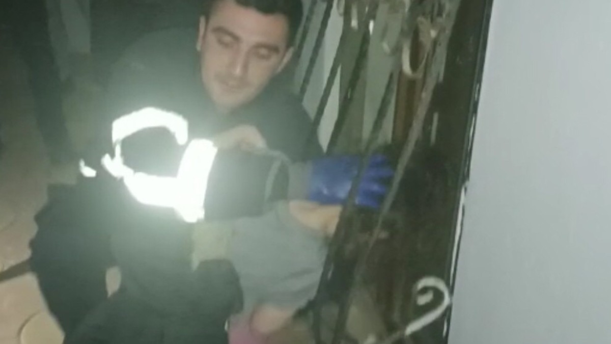 Ardından da ekipler, demir parmaklıkları makinayla açarak çocuğu kurtardı.