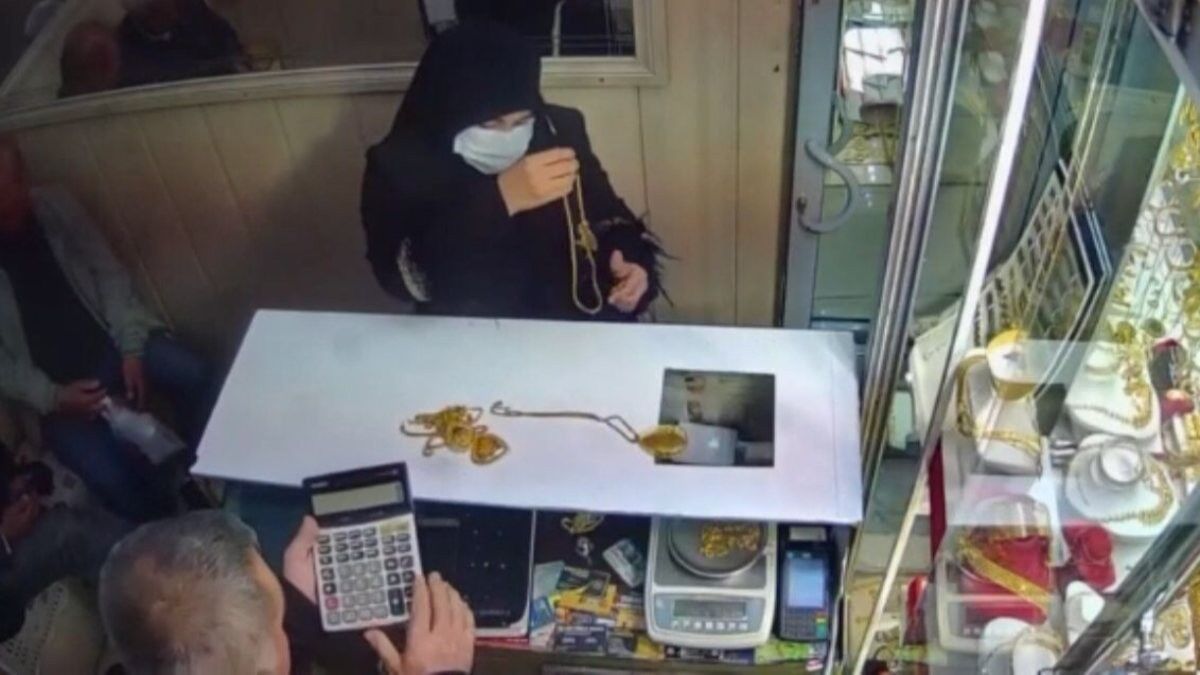 Saniyeler içerisinde çaldığı kolyeyi elinde tartarak gramajını hafif bulan kadın, vitrin üstünde duran diğer kolyeleri eliyle tartarak en ağırını seçip onu çaldı.