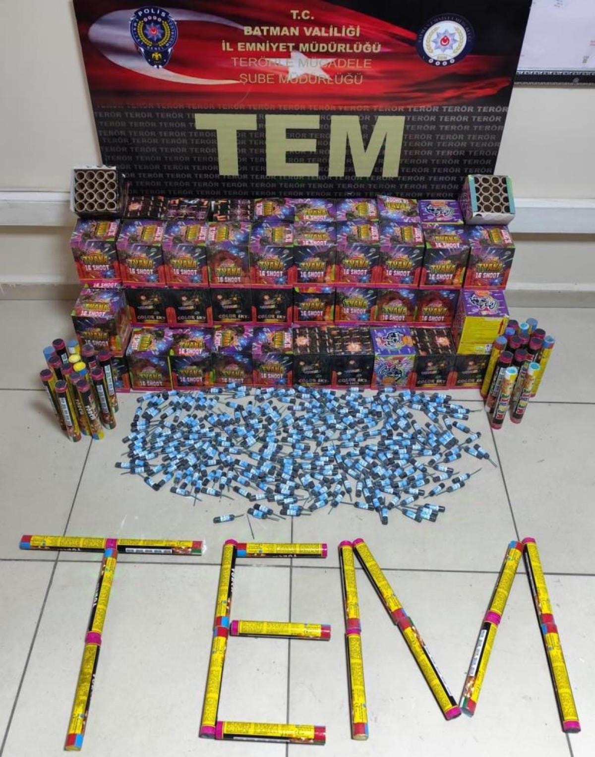 Batman İl Emniyet Müdürlüğü Terörle Mücadele Şube ekiplerinin gerçekleştirdiği çalışmalarda, yasa dışı gösterilerde kullanılmak üzere bir minibüse havai fişek ve torpil yüklendiği, bu malzemelerin eylemlere katılacak kişilere dağıtılacağı belirlendi.