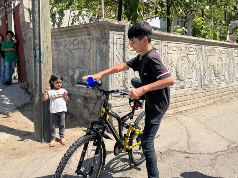 Bisikletini alan Ömer de mahallesinde gezmeye başladı.