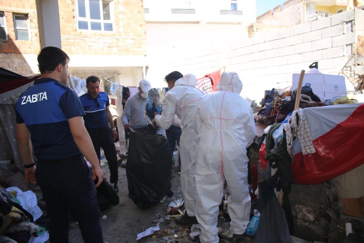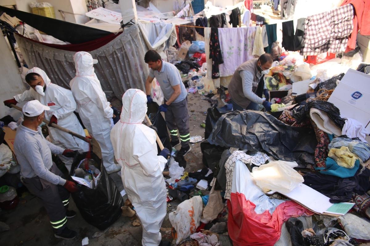 Çöplerin tahliyesinin ardından Veterinerlik İşleri Müdürlüğü, evde ilaçlama ve dezenfekte işlemi gerçekleştirdi.