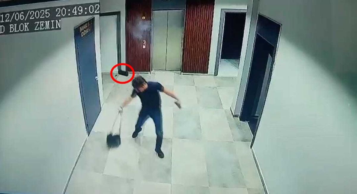 Özcan elinden yaralanırken, patlama anı apartmanın güvenlik kamerasına yansıdı.