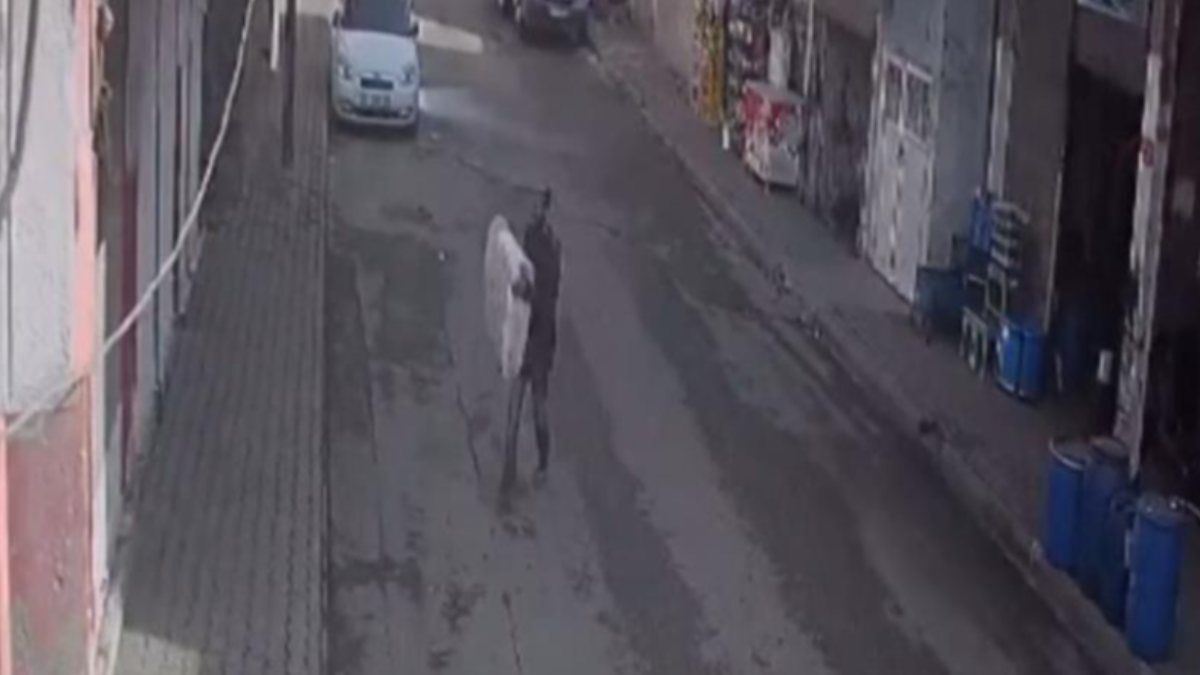 Etrafı kontrol etmesinin ardından aldığı çuvalla olay yerinden hızlıca uzaklaşan hırsızın görüntüleri, güvenlik kameraları tarafından kaydedildi.