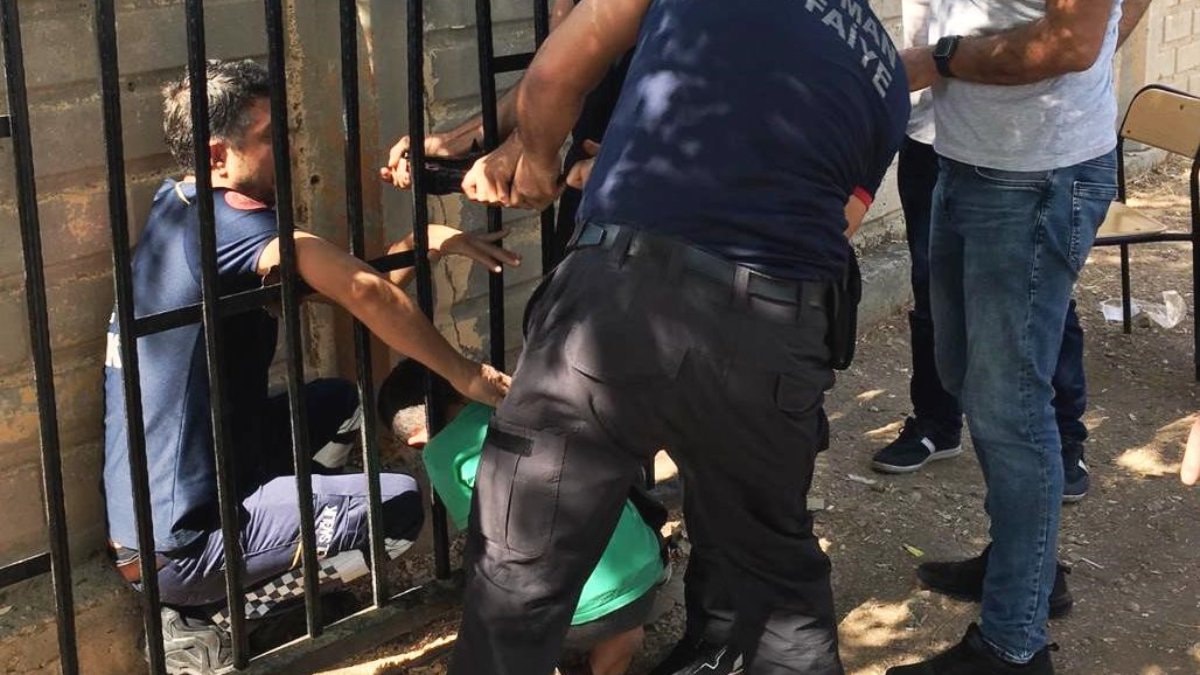 Bu sırada kafasını bahçe demir korkuluklarına sıkıştırdı.