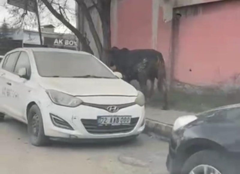 Batman’ın Gültepe Mahallesi’nde, sanayi sitesine aniden giren başıboş bir boğa, çevredeki esnaf ve vatandaşlara korkulu anlar yaşattı.