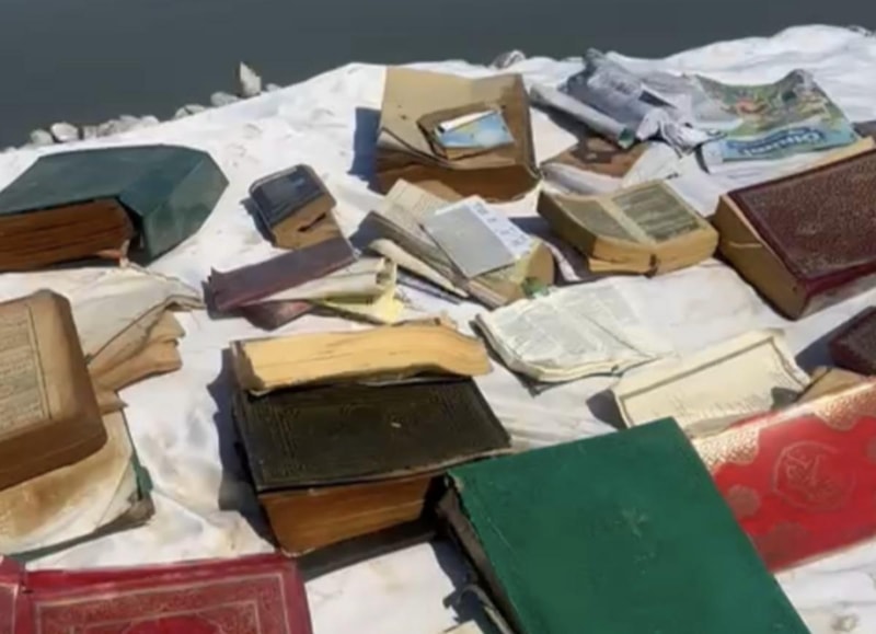 Çuvalın içerisine bakan vatandaşlar, çok sayıda dini kitap görünce büyük şaşkınlık yaşadı.