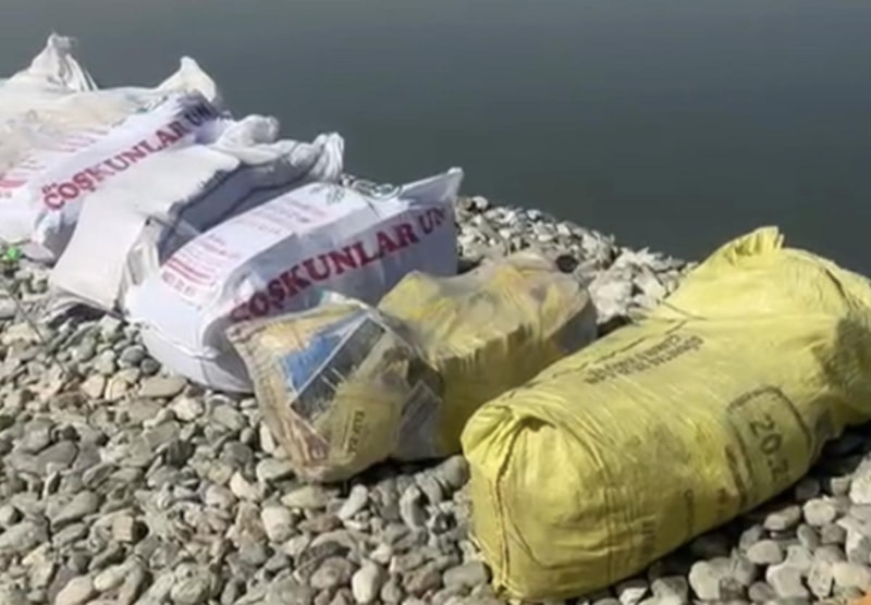 Batman Çayı kenarına piknik yapmak için giden vatandaşlar, kıyıya bırakılmış çok sayıda çuvalla karşılaştı.