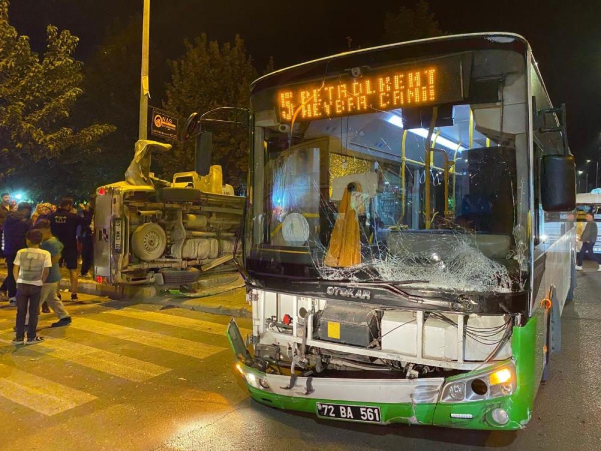 Batman’ın Gültepe Mahallesi’nde 72 BA 571 plakalı belediye yolcu otobüsü ile 01 CNM 49 plakalı pikap çarpıştı. Çarpmanın şiddetiyle pikap ters dönerek kaldırıma çıktı ve elektrik direğine çarparak yan yattı.