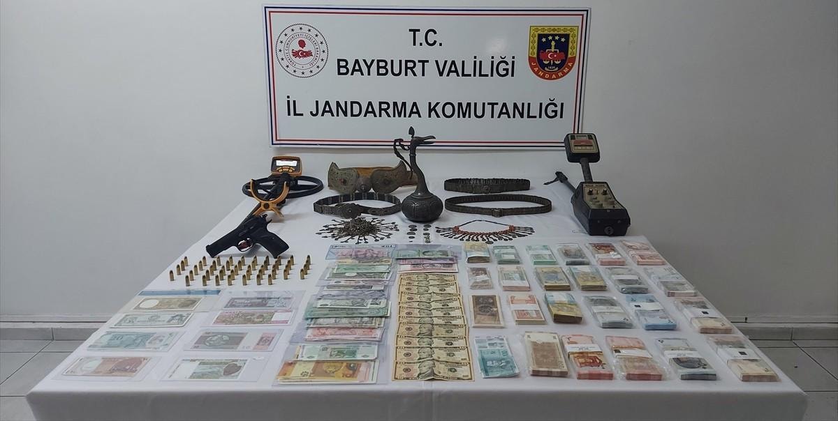 Jandarma ekiplerince şüphelilerin ikamet, iş yeri ve araçlarında yapılan aramalarda Osmanlı ve Selçuklu dönemlerine ait gümüş işlemeli 4 kemer, üzeri işlemeli gümüş ibrik, 2 takı eşyası, Doğu Roma dönemine ait 10 sikke ve objeler ele geçirildi.