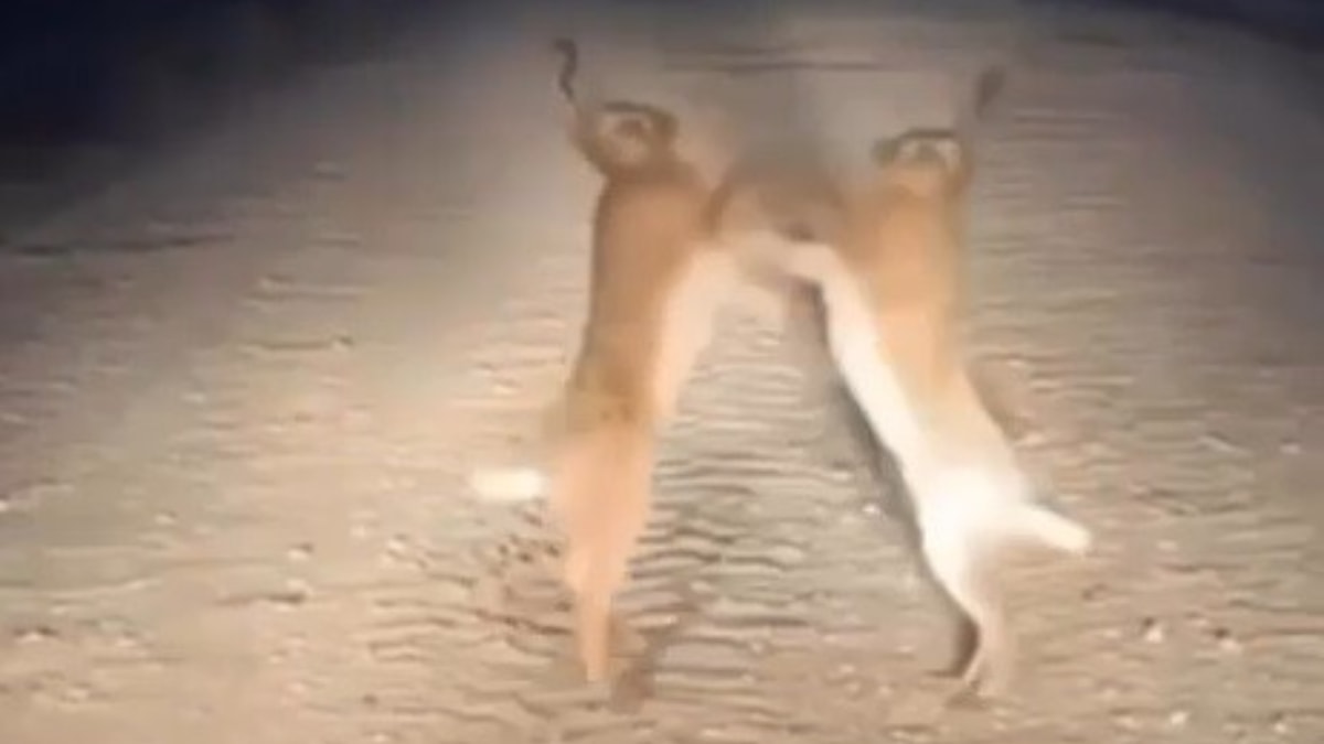 - Tavşanların boks maçını andıran mücadelesi bir sürücü tarafından kaydedildi.