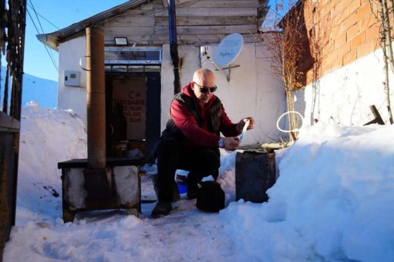 Köy evinde bulunan sobayı yakarak işe koyulan Mutlu, "Köydeki yaşam şartları zor, hava soğuk sobanın üzerine güğümleri koyduk çay demleyeceğiz. Bu zor şartların, bu soğuk havanın en güzel yanı ise soba üzerinde demlenen çayı içmek." dedi. Çayını içtikten sonra mangal yakan Mutlu, soğuk kış günlerini bu şekilde geçirdiklerini ifade ederek, "Bizim de soğuk kışlarımız bu şekilde geçiyor. Bu havaları çile olarak görmüyoruz kar, kış ve kara demlik bizim en büyük tutkumuz." dedi.