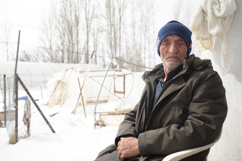 3 serası da tamamen yıkılan Öksüz'ün yaklaşık 60 senelik emeği heba oldu. Yıkılan seralarına uzaktan bakan 75 yaşındaki çiftçi Öksüz, duygusal anlar yaşadı.
