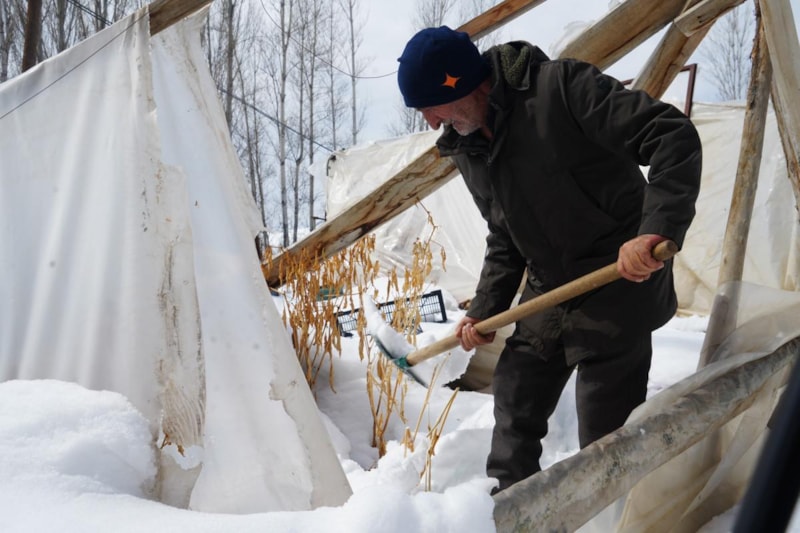 Seracılık üzerine çok sayıda denemeler yaptığını, ata tohumları üretmek için çaba gösterdiğinin altını çizen Öksüz, "Gelinen noktada 60 yıllık çiftçilik hayatımız bitti gibi görünüyor. 3 seram kardan dolayı çöktü, karın altında kaldı. Daha önemlisi depo diye kullandığım seralarımın birinin içerisinde ata tohumlarım vardı.