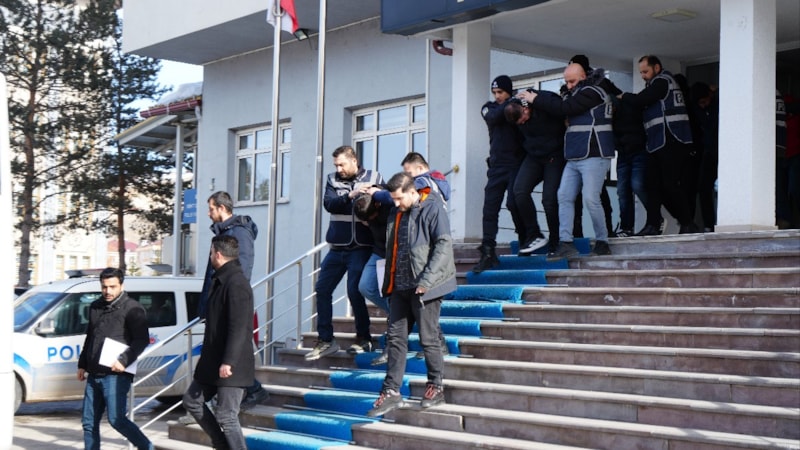 Mersin'den Bayburt'a getirilen şüpheliler, emniyetteki işlemlerinin tamamlanmasının ardından adliyeye sevk edildi.