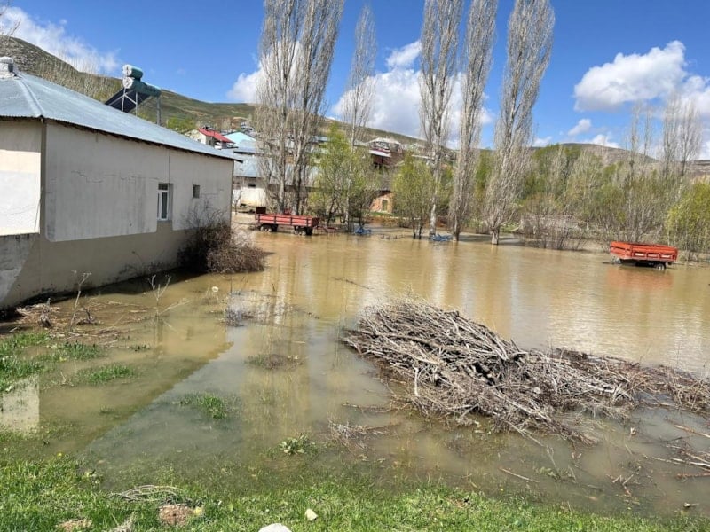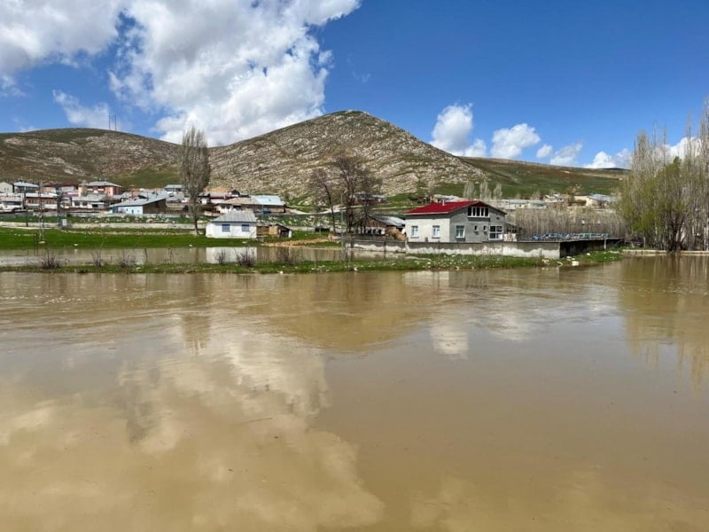 Cep telefonu kamerasına yansıyan görüntülerde ise köyün bir kısmının su altında kaldığı, taşan suların yerleşim alanlarına doğru hızla ilerlediği net bir şekilde görülüyor.