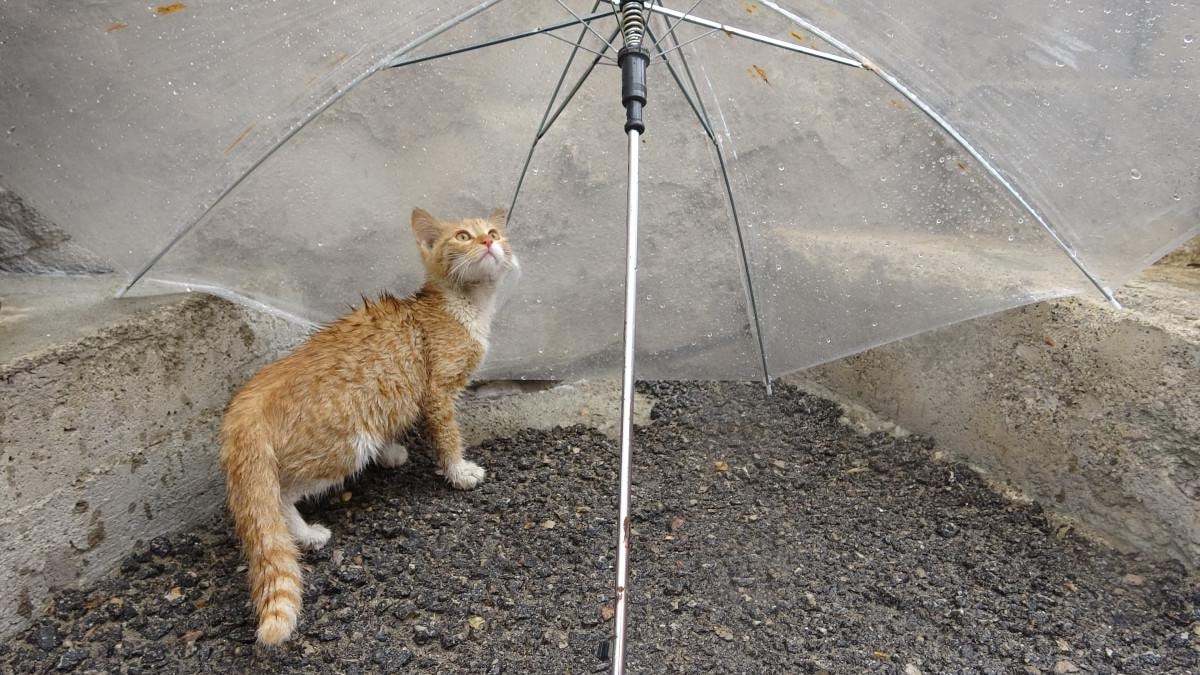 Yağmurun durmasıyla birlikte yavru kedi daha sonra mahalleden uzaklaşarak annesinin yanına gitti.
