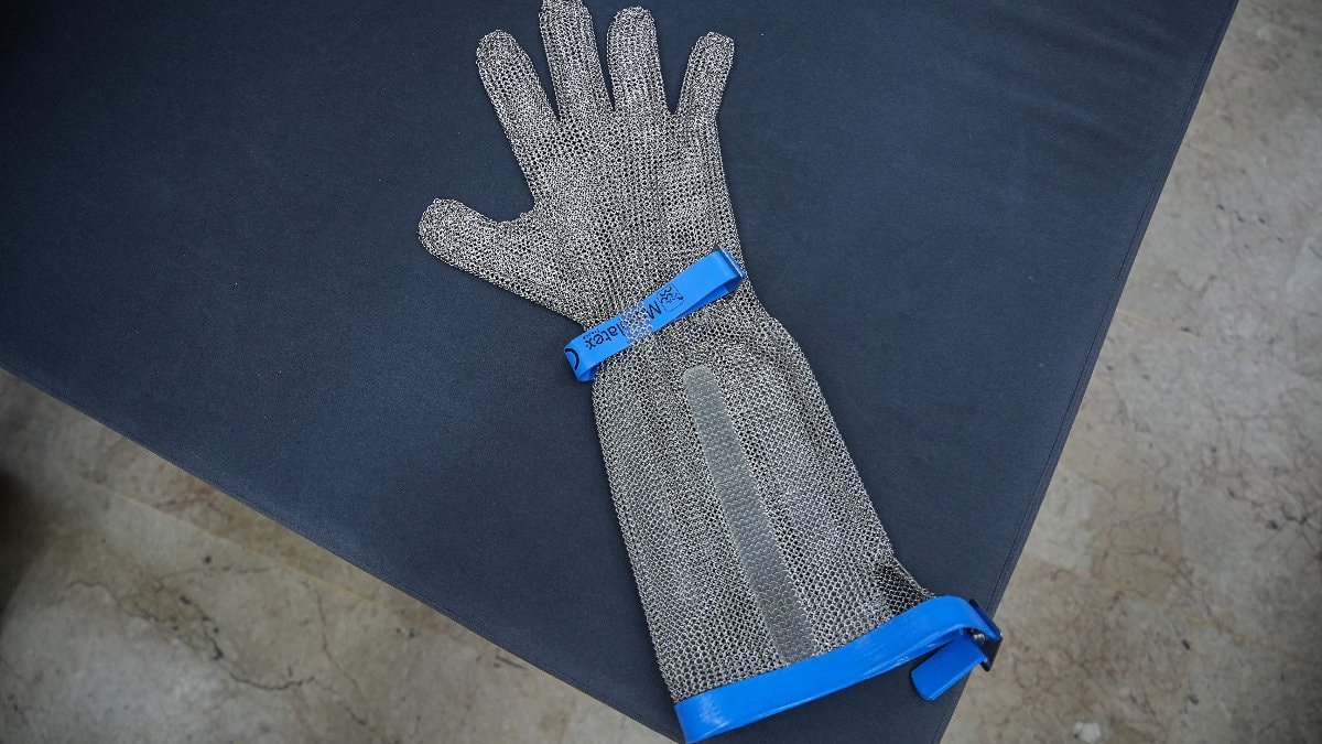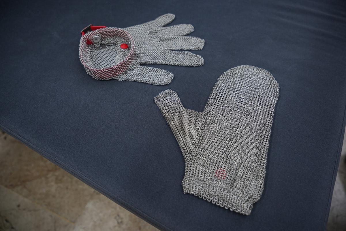 Çelik yapısıyla rahat kullanılan, bıçak darbesi geldiğinde elleri kesilmekten koruyan çelik eldiven, 4 bin ile 6 bin lira arasında alıcı buluyor.