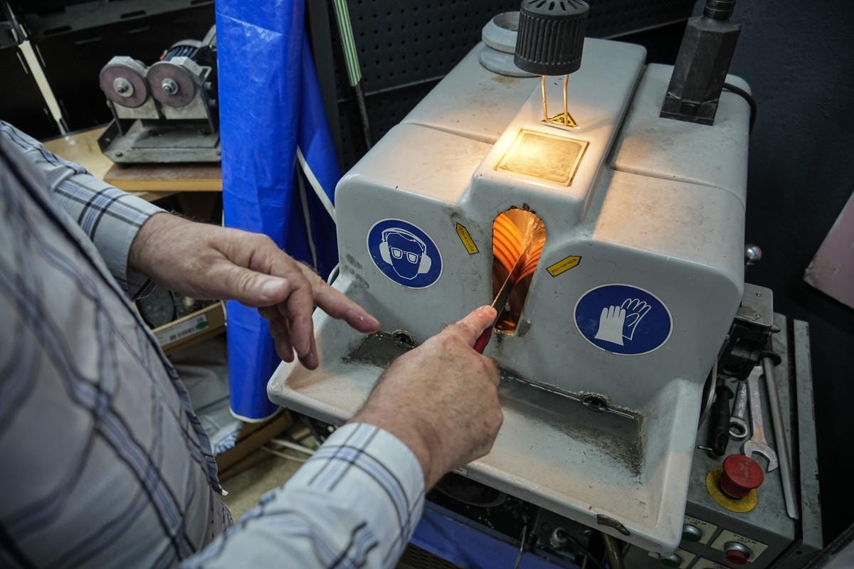 Yani çelik yoğunluğu sıkı, aşınma katsayısı yüksek olması lazım. Şu anda piyasada kullanılan bizim de bazı çeşitlerimize uygun fiyatlı olan çeşitlerimizde kullandığımız çelikte yıpranma katsayısı 40. Bizim kurban bıçağı için kullandığımız çeliklerde yıpratma katsayısı 500. Bunu herhangi bir bıçakçıya sorsan bilmez. Dünyada üç tane olan, laboratuvarın bir tanesi bizde. Biz çeliğin röntgenini de çekebiliyoruz. Her türlü aşamasını da tokluğunu da tespit edebiliyoruz." şeklinde konuştu.