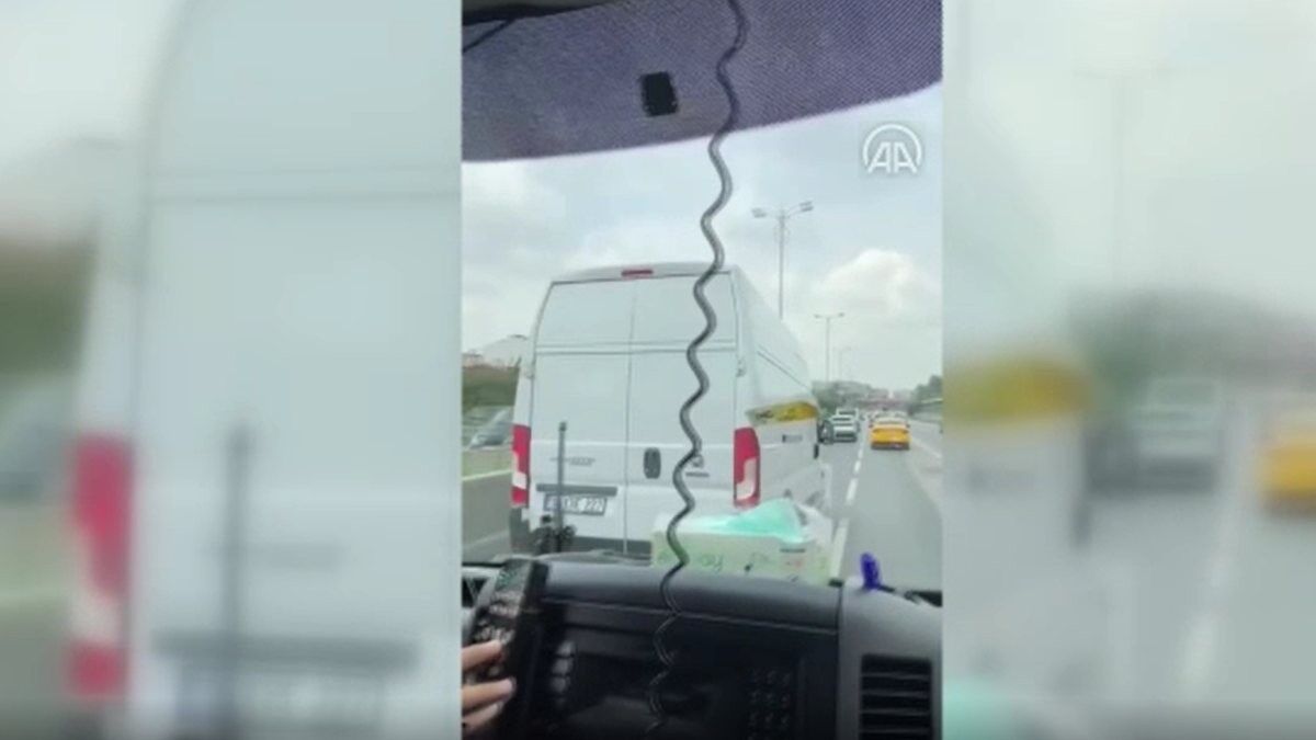 Sağmalcılar Viyadüğü'nde sol şeritte seyir halinde olan kapalı kasa minibüs, arkasından gelen ambulansa yol vermedi.