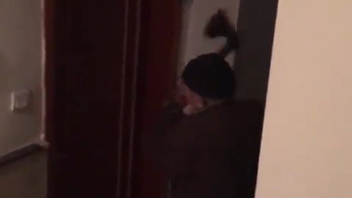 Öte yandan kapıya defalarca balta darbesi vuran adamın görüntüleri, sosyal medyaya büyük tepki topladı.