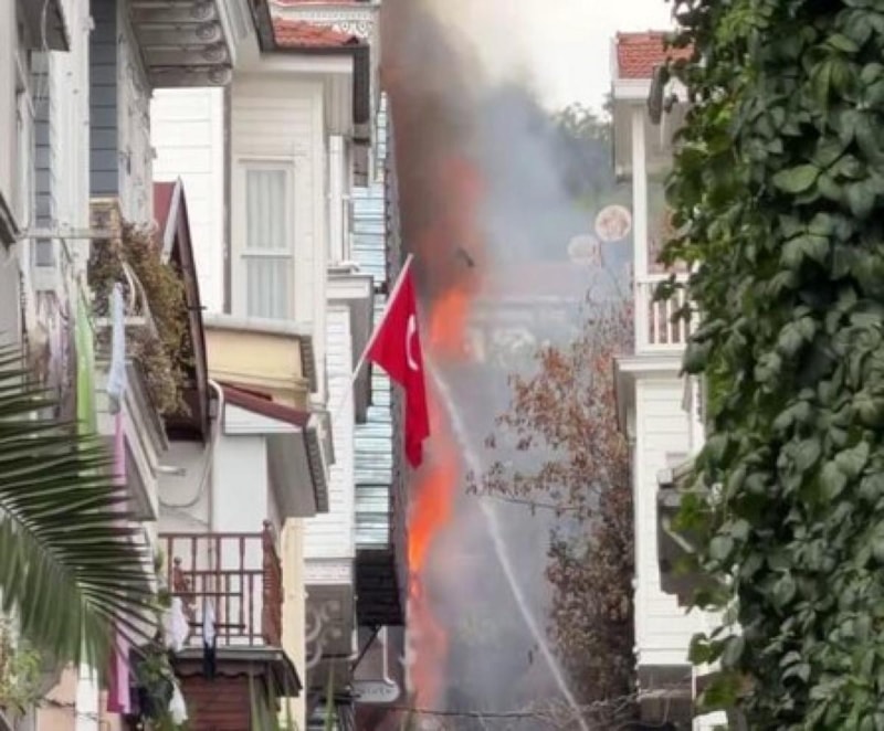 İstanbul'un Beşiktaş ilçesinde, 4 katlı ahşap bir binada henüz bilinmeyen nedenle yangın çıktı. Alevlere teslim olan bina kısa sürede yanarak çöktü.