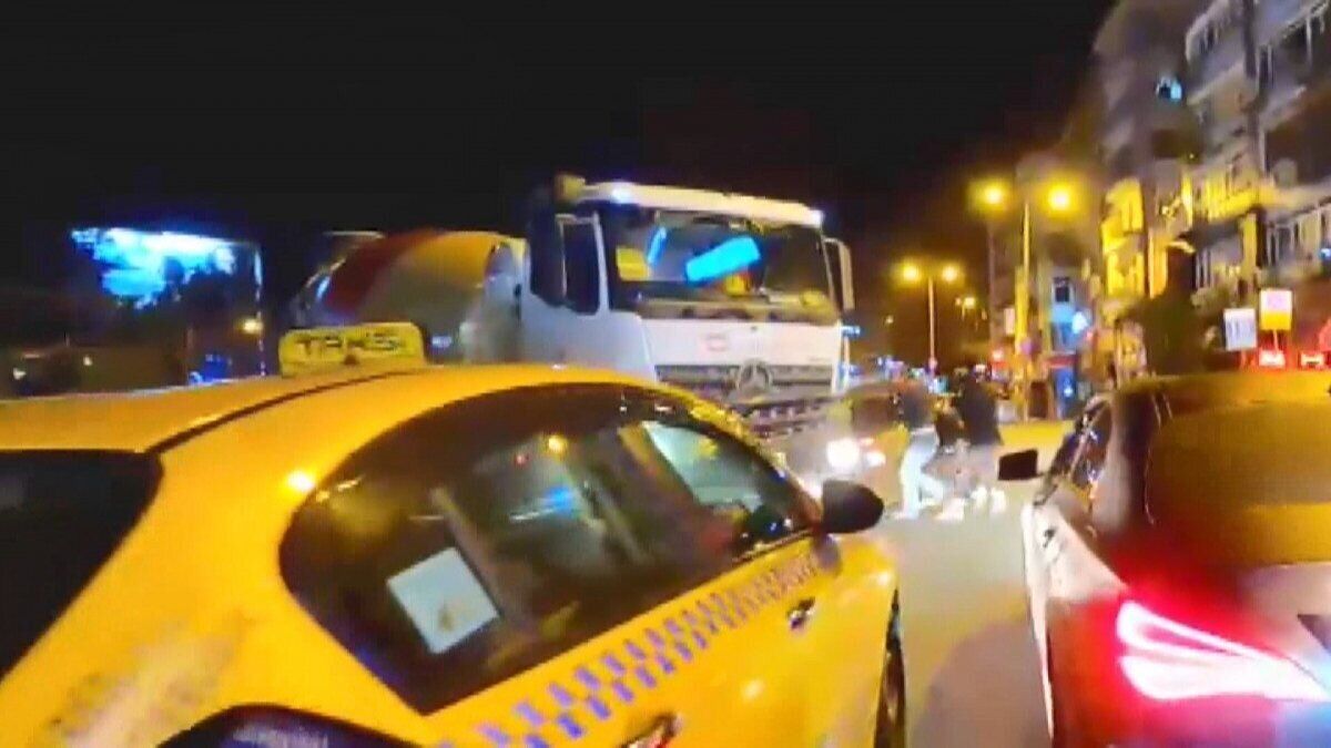 Görüntülerde, cadde ortasında motosikletteki iki kişi ile beton mikseri şoförüne saldırdıktan sonra kaçtığı anlar yer aldı. Arkalarından giden şoförün, kasklı kişilere tekme tokat saldırdığı, ardından beton mikserinden aldığı bidon ile motosiklettekilerden birine vurduğu görüldü.
