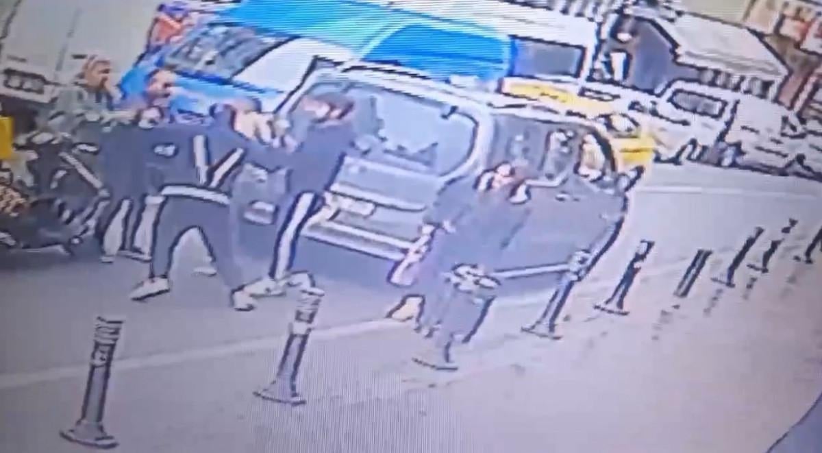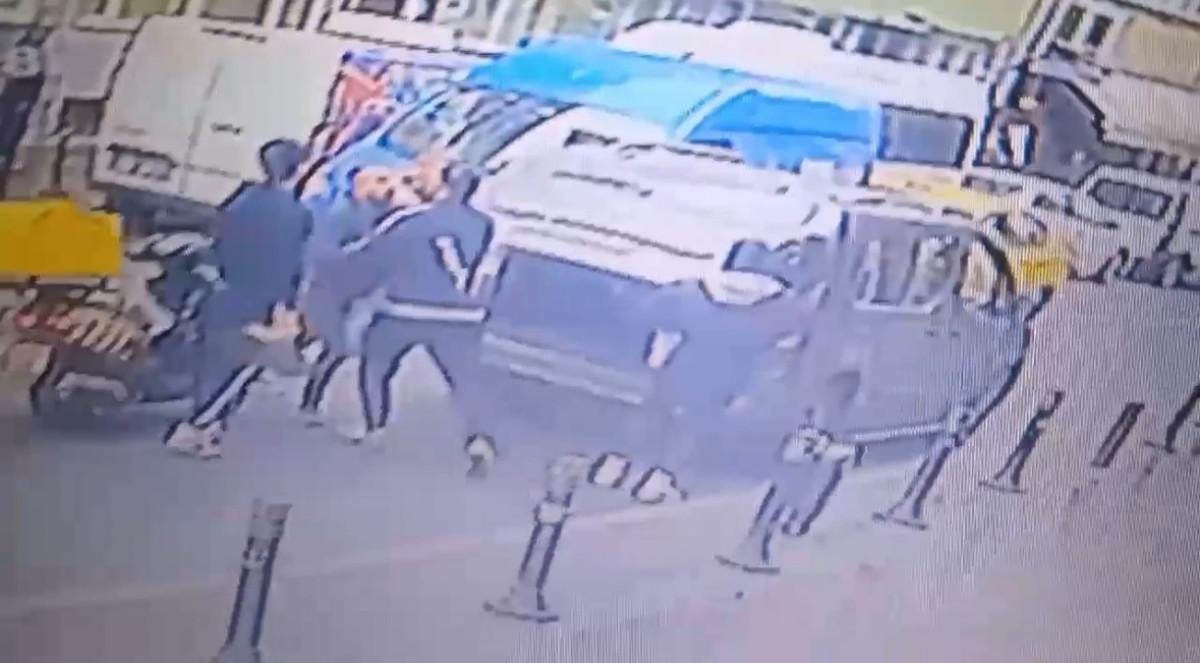 Şahıs bıçağı bırakınca da genç, onu yumruk ve tekmelerle cadde ortasında evire çevire dövdü.
