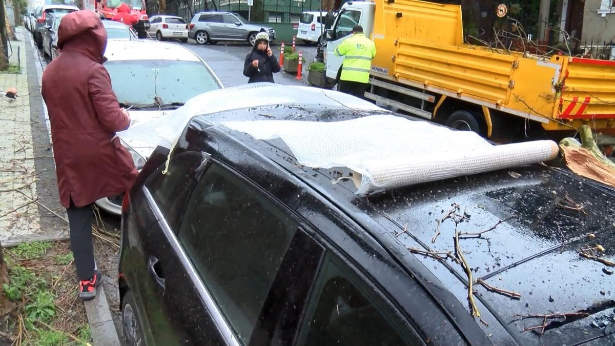Beşiktaş Saray Caddesi’nde ise çınar ağacından kopan kuru dal park halindeki otomobilin üzerine düştü.