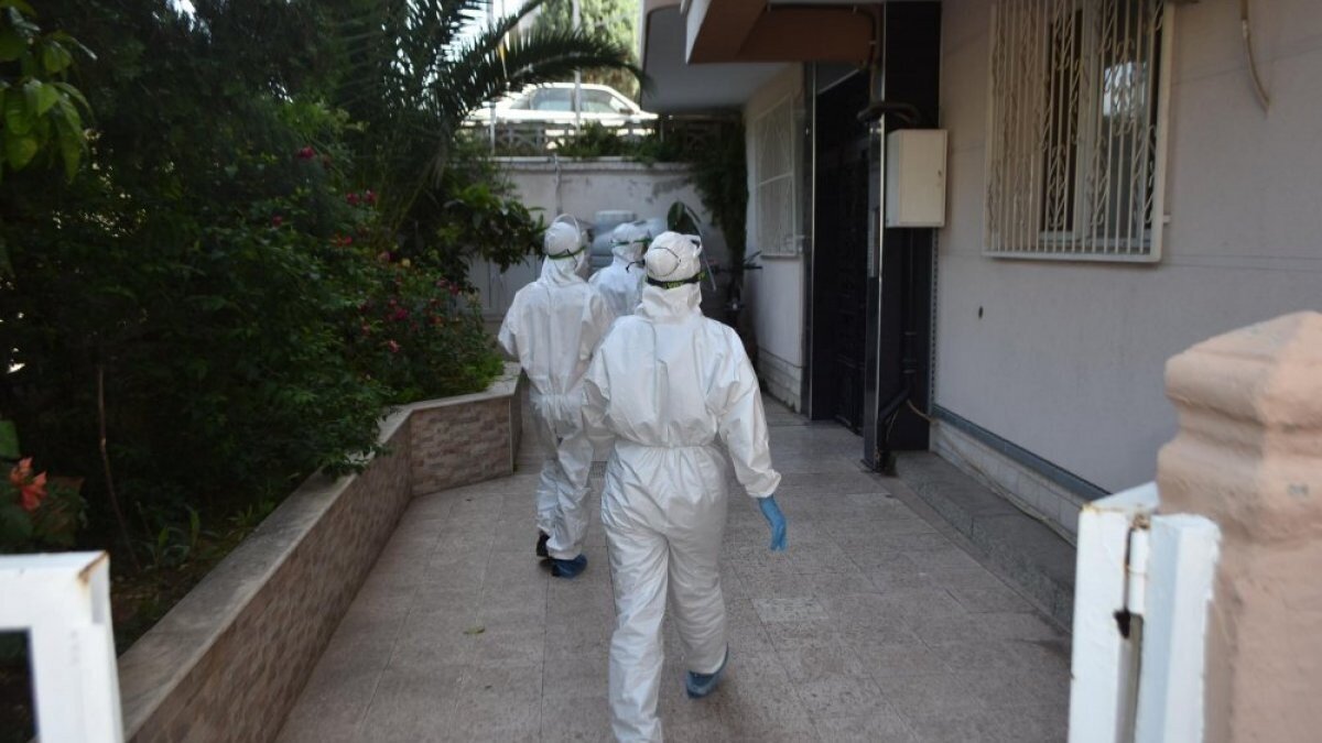 İstanbul'un Beşiktaş ilçesinde iki kişi, koronavirüs zincirini oluşturan kişileri bulmak için görev yapan filyasyon ekibi gibi giyindi.