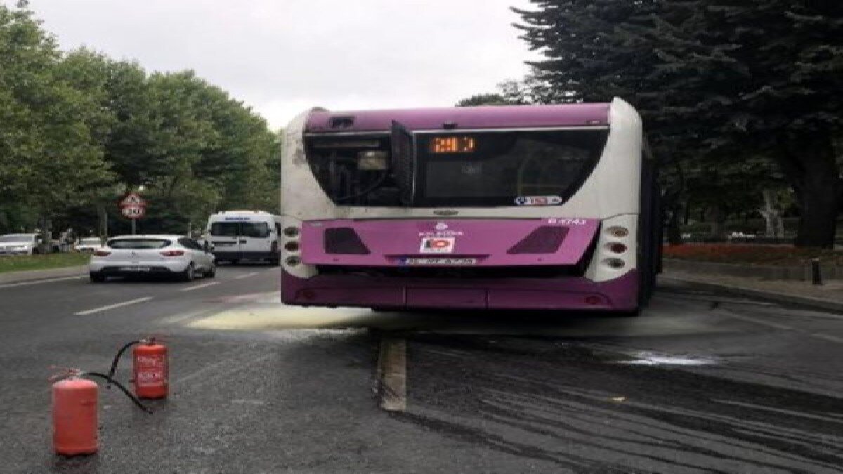 İstanbul Beşiktaş'ta seyir halindeki otobüsün motos kısmı bilinmeyen bir nedenle alev aldı.