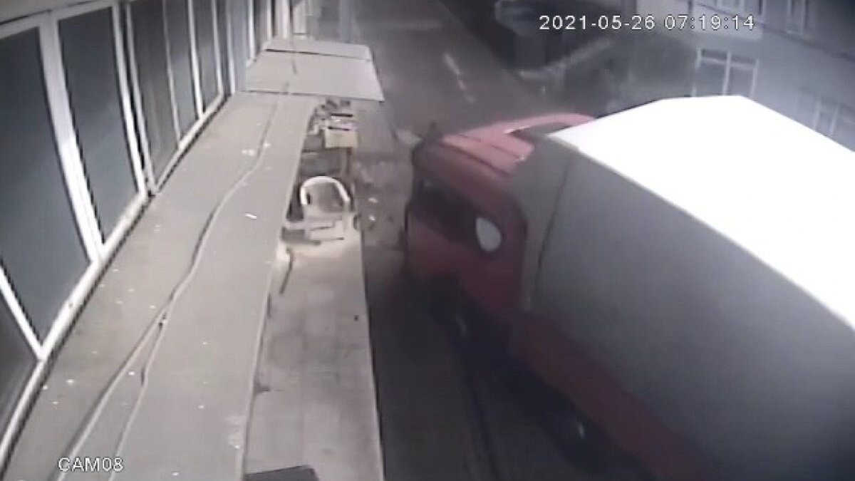 Tırın kayması ve hafif ticari araca çarpması, güvenlik kamerası tarafından kaydedildi.