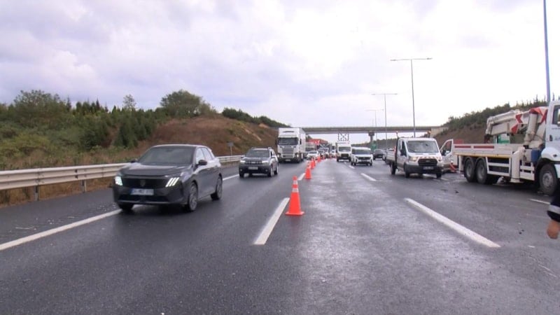 Kaza nedeniyle otoyolun üç şeridi ulaşıma kapatıldı. Jandarma ekipleri, trafiği tek şeritten kontrollü şekilde yönlendirirken uzun araç kuyrukları oluştu.